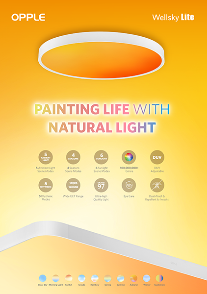 Building on the strengths of the WellskySeries — SDL technology, it offers an ultra-realistic natural light experience and exclusive light with 100,000,000+ colors and ultra-wide CCT (1800K–12000K), as well as eye-care spectrum for long-lasting comfort.